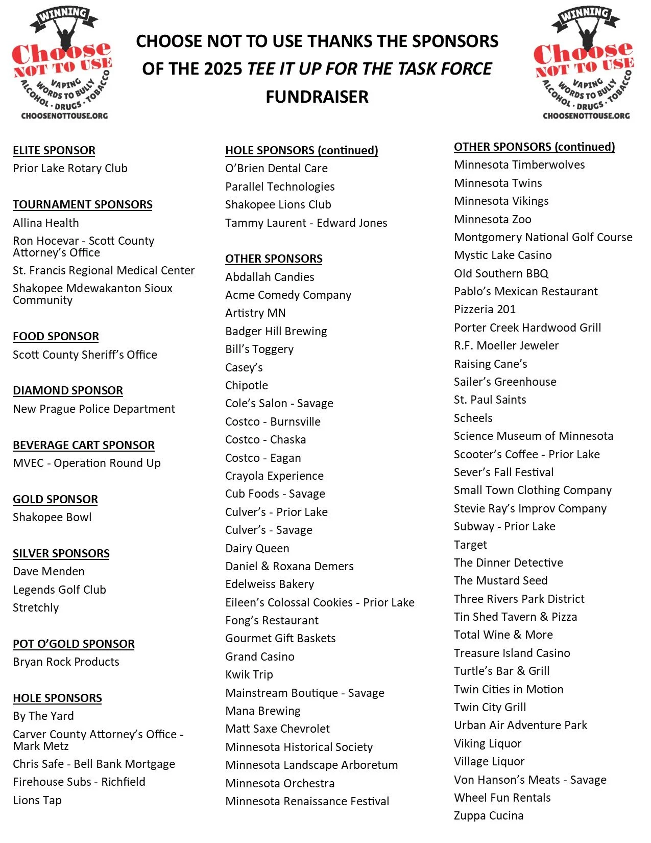Scott County Drug Prevention Task Force OUR ANNUAL FUNDRAISER19th Annual Tee It Up For The Task ForceTuesday, August 25, 2026Legends Golf Club, Prior Lake Register here!